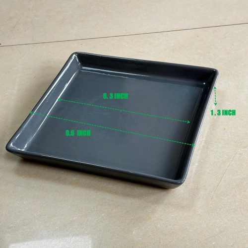 Square Plant Saucer 10 Inch 1 Pack,Plant Trays for Pots, Gray Ceramic Plant Saucers for Indoors Outdoors, Plant Drip Tray 4 6 8 10 12 14 Inch
