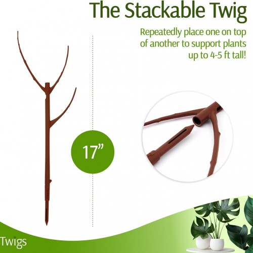 - STACKABLE PLANT GROWTH SUPPORT: Twigs GA Stackable Plant Stakes conveniently grow with your climbing plants. Simply place one Twig on top of another to support household plants up to 4 to 5 feet tall.