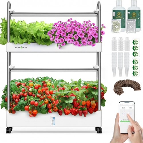 - 🌿𝗜𝗻𝗰𝗹𝘂𝗱𝗲𝘀: 1 Hydroponic System, 1 Adapter, 15 Basket Holders, 15 Grow Sponges, 1 Nutrient Set (A&B), 15 ID Tags, 15 Grow Domes, 1 Tweezers, 1 Water Level Indicator, 15 Support Sticks, 6 Caps for Planting Holes, and 1 User Manual. Seeds not included