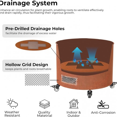 Steel Planter with Wheels – 14.6″ Weathering Raised Garden Bed for Tomatoes & Vines, 360° Swivel Indoor/Outdoor Use, Thick-Gauge Rust-Resistant Metal Trough (Brown)