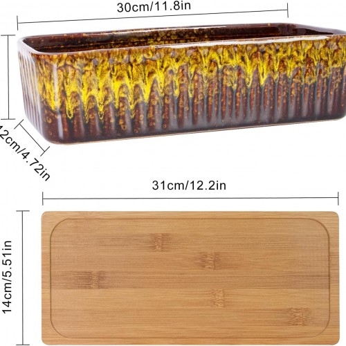 - 【Dimension】The package includes a rectangle succulent planter pot with bamboo tray in perfect size: 11.8 inch(L)*4.72 inch(W)* 3.07 inch(H). For any quality problems, please feel free to let us know. Artketty will never disappoint any customer.(PLANTS NOT INCLUDED)