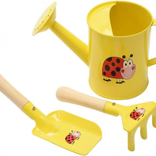 Sungmor Kids Gardening Tools Set Cute Little Gardener Kit | Package Includes 3PC Yellow Ladybird Watering Can & Trowel & Rake Gardening Hand Tools | Perfect for Garden,Yard or Beach