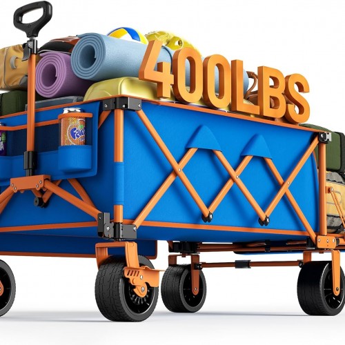 - 【Upgraded Extra-Large Capacity & Cup Holders】The SunnyFeel wagon is built to effortlessly manage heavy loads with its expansive interior and impressive weight capacity. Its enhanced design easily fits camping gear, groceries, or outdoor supplies in one convenient trip, simplifying your transport needs. With a spacious 300L capacity, it delivers dependable performance for tough tasks. Plus, the two mesh cup holders keep your beverages stable and upright