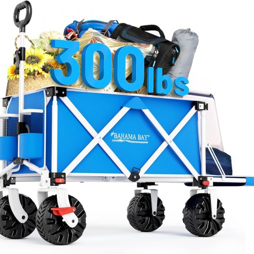 - 【Upgraded Extra-Large Capacity & Cup Holders】The SunnyFeel wagon is built to effortlessly manage heavy loads with its expansive interior and impressive weight capacity. Its enhanced design easily fits camping gear, groceries, or outdoor supplies in one convenient trip, simplifying your transport needs. With a spacious 300L capacity, it delivers dependable performance for tough tasks. Plus, the two mesh cup holders keep your beverages stable and upright