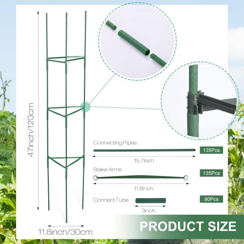 - Package Includes: you will receive 15 packs high tomato cages set, including 135 pieces steel stakes, 135 pieces stake arms, 90 pieces connecting pipes, 15 pieces cable ties, you can assemble according to your own needs to meet any of your needs, enough quantity and good combinations to support your growing season’s various plants