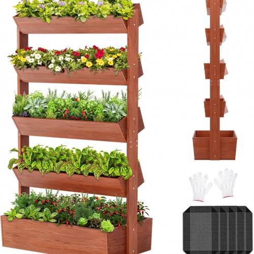 - Built to Last: Crafted from high-quality, natural cedar wood and reinforced with durable screws, this vertical garden tower ensures stability and longevity. It’s rot-resistant and sturdy, perfect for outdoor conditions. We’ve also included leak-proof soil mats and a pair of gloves to make your planting experience easier