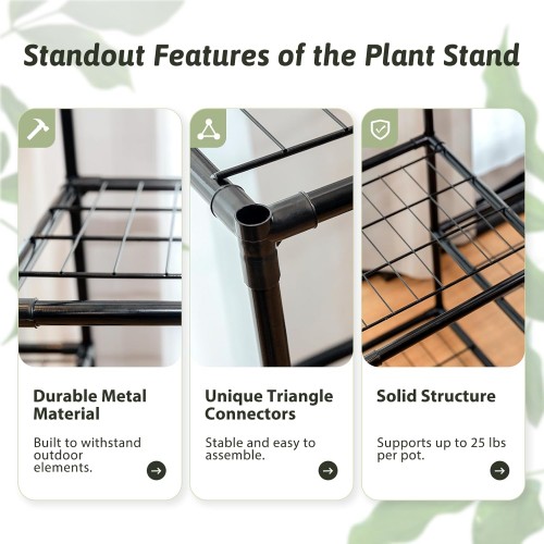 Tall Plant Stand Indoor Corner Plant Shelf Metal Plant Rack Plant Holder Flower Pot Stand for Multiple Plants for Living Room Patio Balcony Garden Porch Black