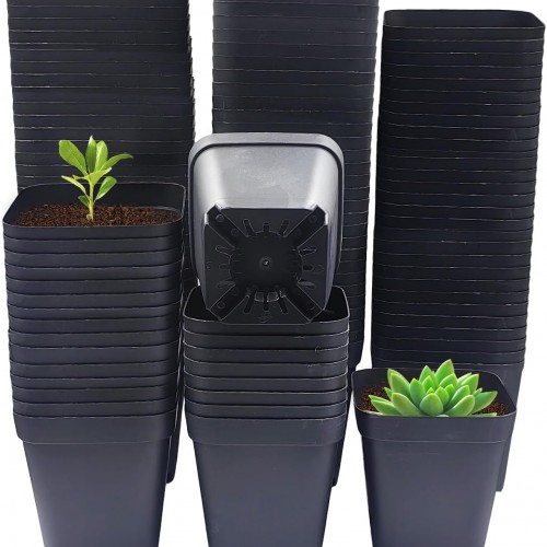 TDHDIKE 4″ Small Plastic Plant Pots with 200 Red Seed Starting Pots for Indoor and Outdoor Planting