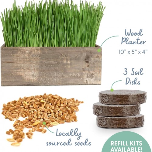 The Cat Ladies Cat Grass Kit Complete with Rustic Wood Planter, Organic Seed and Soil. Easy to Grow – Great for Indoor or Outdoor Cat, Dogs and Other Pets. Prevent Hairballs and Aid Digestion…