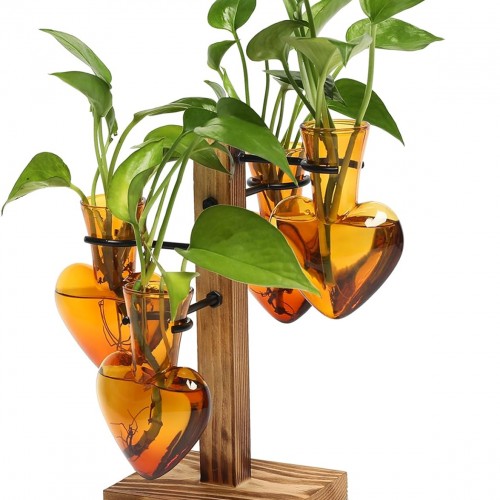 THYGIFTREE Plant Propagation Station with Wooden Stand, Propagation Vases Glass Planters for Indoor Plants Hydroponic Propagating Jars Home Office Decor, Plant Lover Gifts