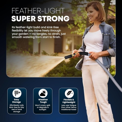 TITAN Flexible Garden Hose 15FT – Ultra Lightweight, Heavy Duty Water Hose with Brass Fittings & Jet Nozzle – Kink-Free, Non-Expanding, Durable Fabric Hose for Yard, Lawn, Car Wash, Outdoor Use