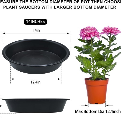 TITE Plant Saucer 14 inch,Heavy Large Planter Durable Thicker Plastic Plant Trays for Indoors and Outdoor,Plant Saucer Drip Trays,Black (14 inch, Black)