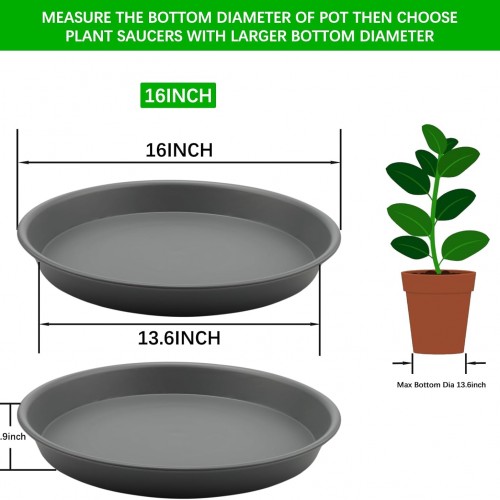 - š»ćSuper Preferential PackagećThis package includes 3 pack of 16 inch plant saucers, Each flower pot saucer measures 15.8″ at the top and 13.8″ at the bottom great for multiple different uses.
