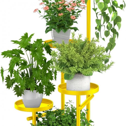 TOSKING 5 Tier Metal Plant Stand Indoor, Plant Shelf, Corner Shelf Flower Pot Stand for Outdoor Plant Stand for Living Room Balcony Garden Patio Bedroom (Black and Brown, 42in)