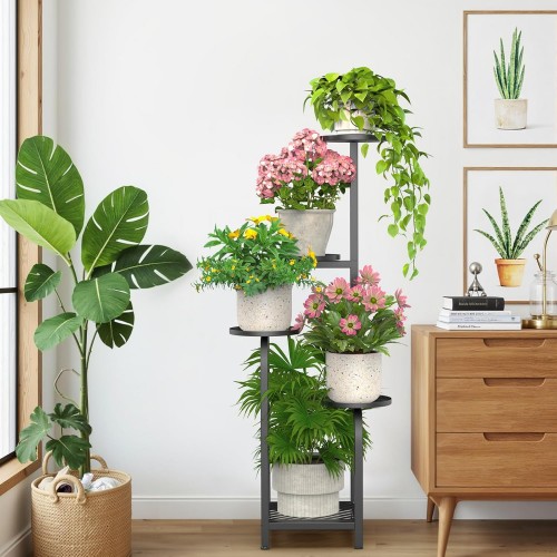 - 【Thrive with Sunlight & Air】Five-tier staggered layout ensures optimal sun exposure and airflow for every plant, promoting lush growth (great for sun-lovers!). The open metal plant stand design beautifully showcases your greenery collection while keeping foliage healthy