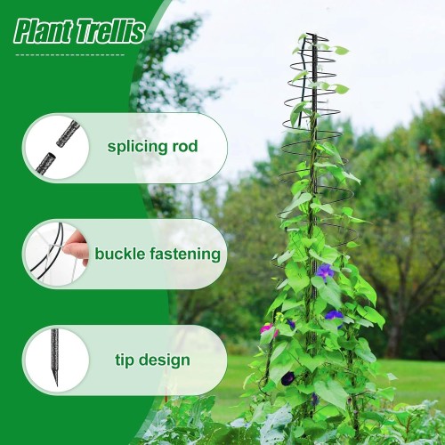 - Unique Design: The spiral design expands in seconds—no tools needed! Secure buckle at the base lock the trellis firmly in place, keeping your climbing plants upright even in strong winds.