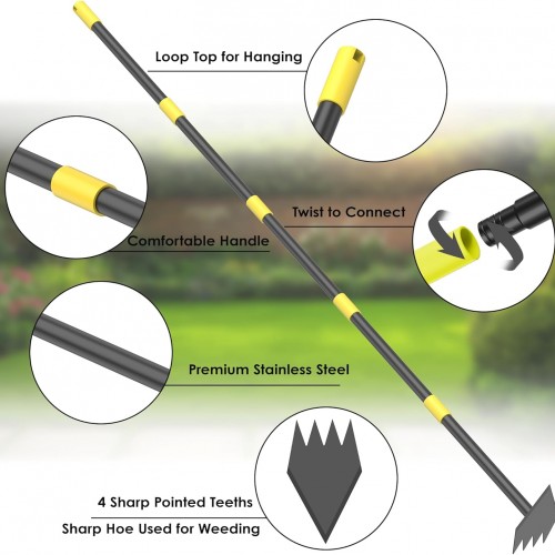 - ⛏️Easy to install: The garden hoe tool adopts a segmented splicing structure, which can be assembled very simply and quickly without the need for any tools, and is quite sturdy.