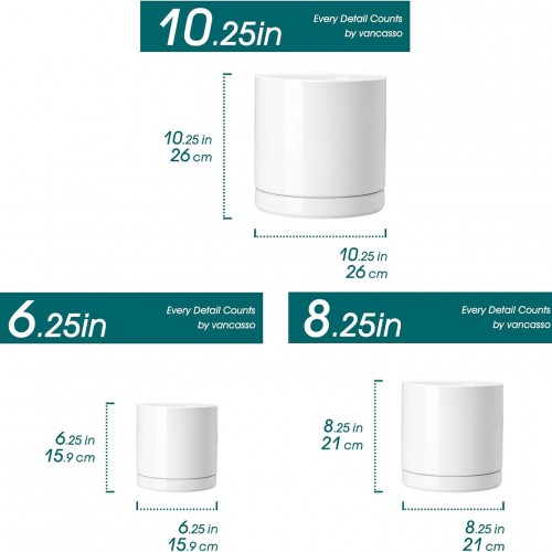 vancasso Ceramic Planters, Plant Pots for Indoor Plants, 6.25+8.25+10.25 Inch Ceramic Pots for Plants, Flower Pots with Drainage Holes, Planters Pot for Indoor House Plant, Set of 3, White