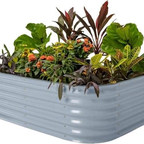 Vego garden Aluzinc Raised Garden Bed Kits, 17″ Tall 6 in 1 Modular Metal Raised Planter Bed for Vegetables Flowers Patio Ground Planter Box-Modern Gray