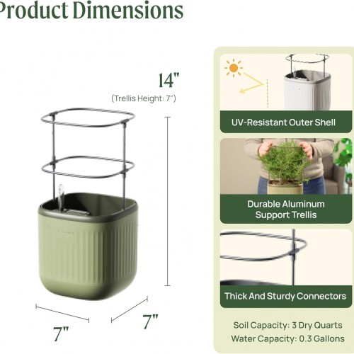 Vego garden Mini Planter Indoor Pots with Trellis Self-Watering Herb Countertop Planter for Climbing Vegetables Flowers Mint Plants Cage- Sage Green