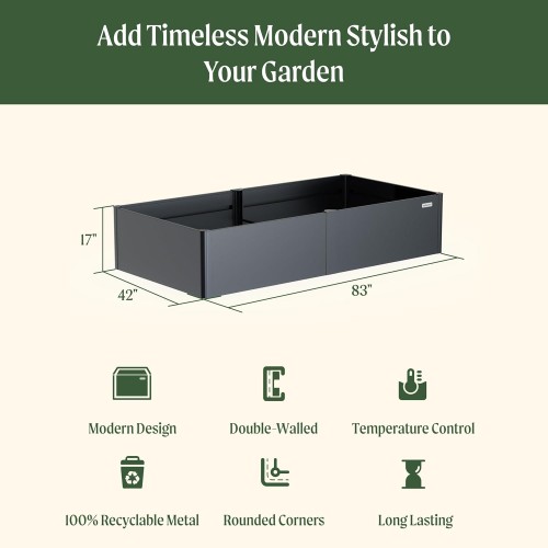 - Modern Design: Vego Garden modern raised garden beds with a sleek, sturdy design and commercial grade materials, our Modern Garden Raised Bed will make a great addition to any gardener’s collection. Take your gardening experience to the next level!