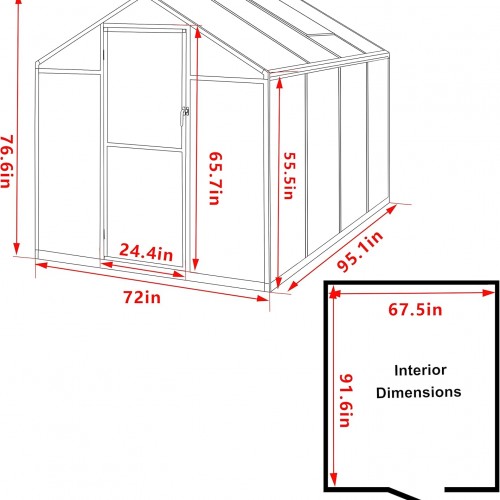 - 𝐃𝐢𝐦𝐞𝐧𝐬𝐢𝐨𝐧𝐬 – Overall size:72″ W x 95.1″ D x 76.6″ H. Door size:24.4″ W x 65.7″ H. Interior size:67.5″ W x 91.6″ D