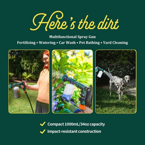 - 🌱 From Garden to Garage: Use this versatile hose nozzle sprayer for watering plants, fertilizing lawns, and cleaning outdoor spaces.