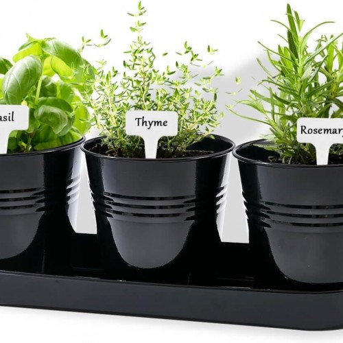 - 【Indoor Herb Garden Kit】The set includes 3 green galvanized herb planters (4.7 inches each) and a 13.4-inch tray, plus 6 plant labels for easy identification. Perfect for starting your own indoor herb garden on the windowsill or kitchen counter.