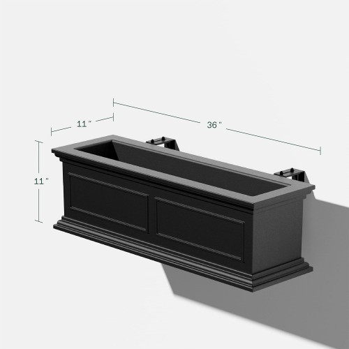 - DIMENSIONS & DETAILS: This railing planter’s exterior dimensions measure 11” in Height, 11” in Width, 36” in Length, and the interior dimensions measure 7.5” in Height, 6.75” in Width, 31.75” in Length
