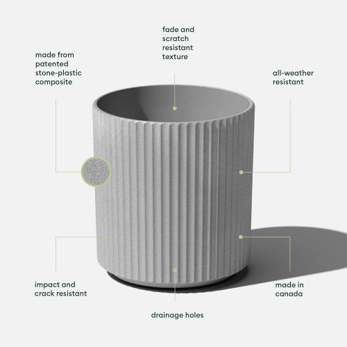 - DURABLE MATERIAL: Made from a plastic-stone composite, the Demi planter has a subtle textured finish and is all-weather resistant to cracks, scratches, UV and fading; perfect for hot or cold climates ranging from -20 to +120 degrees