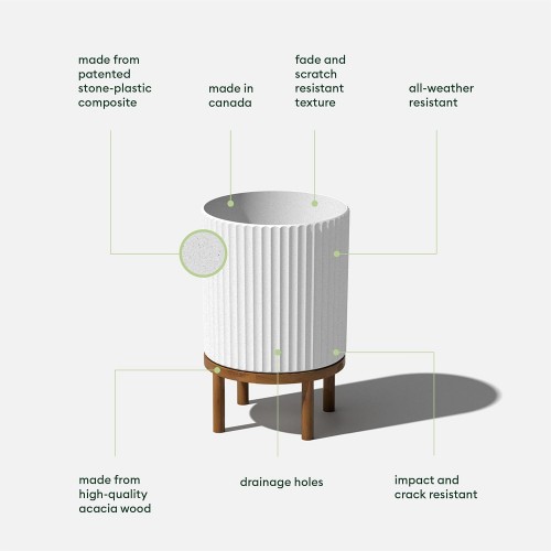 Veradek Demi Series Round Planter w/ Stand for Porch/Patio | Durable Plastic-Concrete & Wooden Stand | Modern Décor for Tall Plants, Flowers