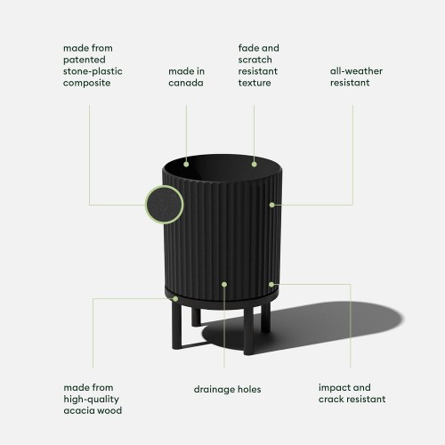 Veradek Demi Series Round Planter w/Stand for Porch/Patio | Durable Plastic-Stone Composite & Wooden Stand | Modern Décor for Tall Plants, Flowers