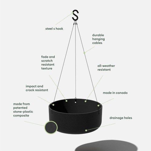 Veradek Mason Series Hanging Kona Planter – Round Planter for Outdoor Balcony/Patio | Made from Plastic-Stone Composite with Hanging Attachment | Modern Décor for, Flowers, Succulents, Small Plants