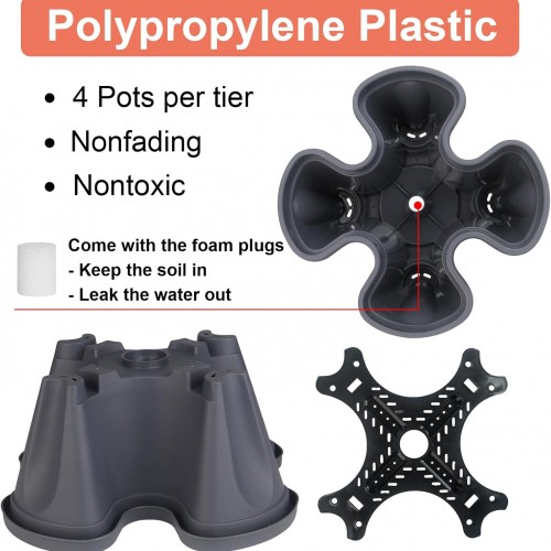 Vertical Planter 5 Tier Stackable Planters Garden Planters Strawberry Herb Flower and Vegetable Planter Indoor Outdoor Gardening Pots with Removable Wheels and Tools