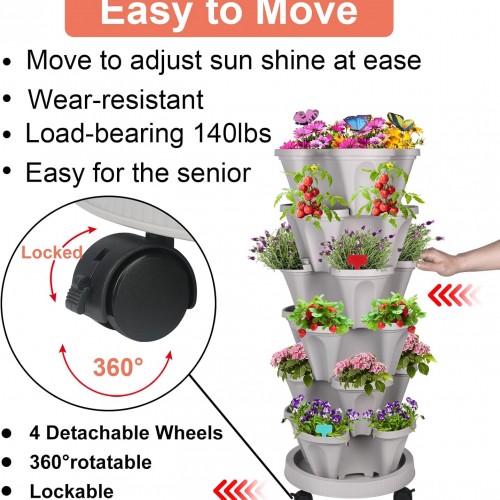 Vertical Planter, 6 Tier Stackable Strawberry Planter with Garden Tool Set, Movable Indoor/Outdoor Garden Herb Pot for Growing Vegetables and Succulents, Gray