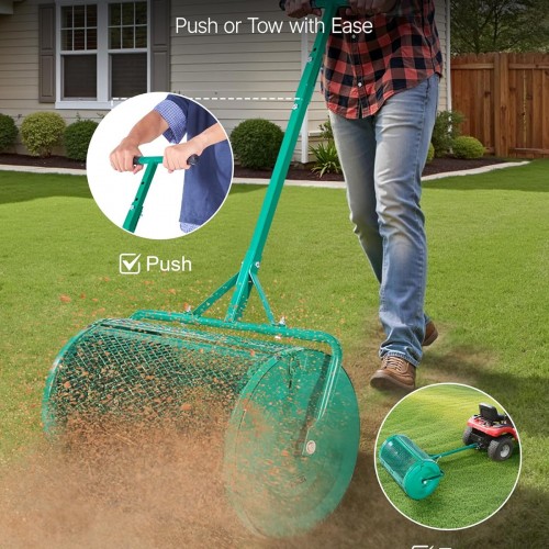 VEVOR Compost Spreader, 24 in Wide Peat Moss Spreader with Push/Tow Handle, 4 Heights Adjustable, Powder-Coated Steel Garden Peat Moss Roller, Heavy Duty Grass Seed Spreaders for Planting Seeding