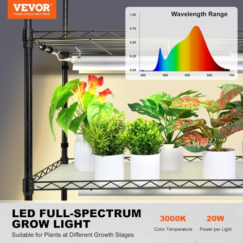 VEVOR Plant Stand with Grow Light, 6-Tier Large Tall Plant Shelf with 3000K 200W Full Spectrum Grow Light, Indoor Grow Light Shelf with Timer and Wheel for Seed Starting 47.2″ L x 13.8″ W x 70.8″ H
