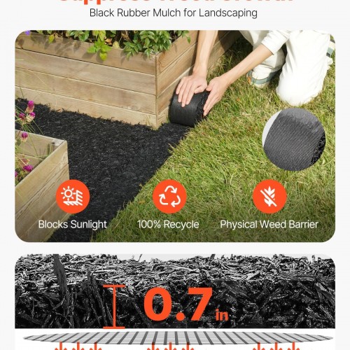 - Weed Control: This rubber mulch roll effectively prevents weed growth by blocking sunlight and avoiding weed roots from penetrating. Its durable and thick design provides long-lasting weed control.