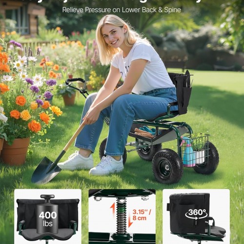 - Heavy-Duty & Stable: Built with a sturdy structure, this heavy-duty rolling garden stool supports up to 400 lbs. The cushioned seat provides comfort and an ideal working height, making it a reliable choice for gardening and other work environments.