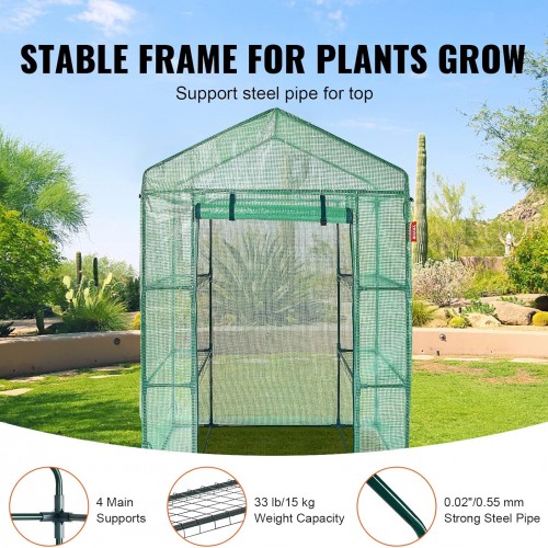 VEVOR Walk-in Green House, 55.5 x 29.3 x 80.7 inch, Portable Greenhouse with Shelves, High Strength PE Cover with Roll-up Zipper Door and Steel Frame, Set Up in Minutes, for Planting and Storage