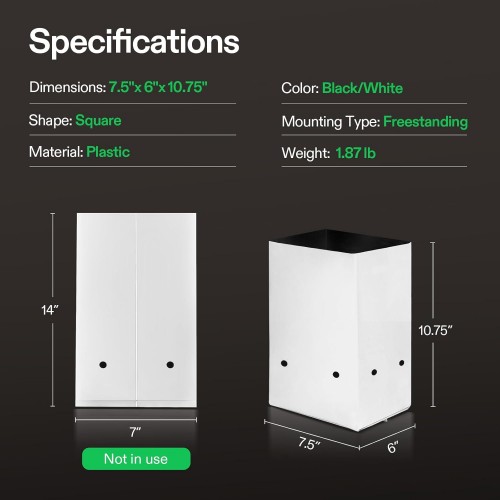 - Stability & Lightweight: The VIVOSUN Plastic Bag has notches on its sides to keep it upright and stable when filled and only weighs 1.2 pounds, so it is portable, lightweight, foldable, and easy to store; The dimensions are 7” x 5.7” x 14”(folded size)