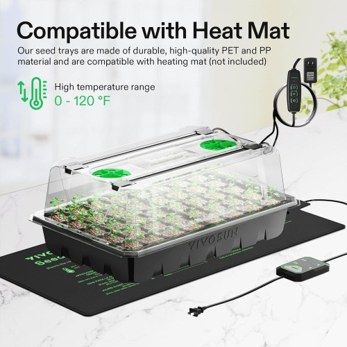 VIVOSUN 6-Pack Seed Starter Trays, 240-Cell Seed Starter Kit with 2 Set of LED Lights, 3.6″ Higher Cover, Adjustable Vents, Drainage Holes, Green Propagation Tray for Planting Seed, 40 Cells x 6 Packs