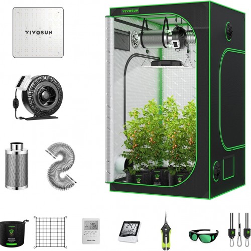 VIVOSUN GIY 3×3 Grow Tent Complete System, 3×3 ft. Grow Tent Kit Complete with 4-inch Inline Fan Package, VS2000 LED Grow Light, Temperature Humidity Monitor, Netting, Grow Bags, Pruning Shear & Timer