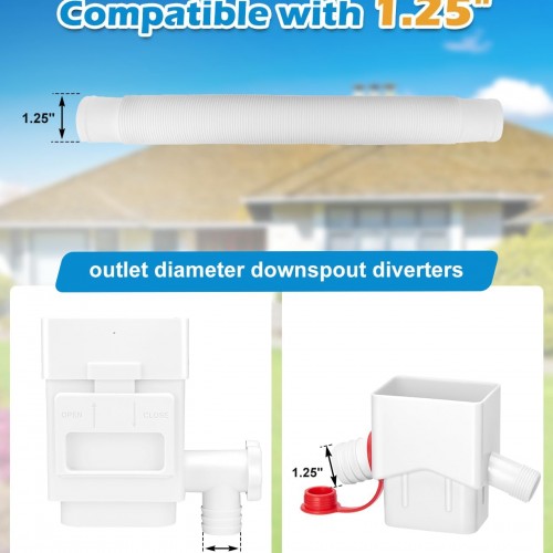 WADEO Rain Barrel Hose Connector, Compatible with Downspout Diverters(1.25” Outlet Diameter) & Links Rain Barrels for Increased Storage