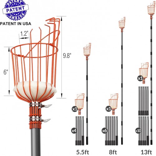 Walensee 13FT Fruit Picker, Adjustable Fruits Picker Tool with Lightweight Stainless Steel Pole and Big Basket, Fruit Catcher Equipment Tree Picker for Apples Mango Pear Orange Avocados Fruit Picking