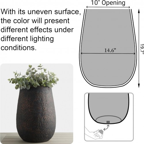Weathered Concrete 19.7 Inch Tall Planter, Large Decorative Flower Pot with Drainage Hole, Round Plant Container for Home, Garden, Patio, Courtyard, A Dusting of Bronze Rust with Green Tone, 1 Pack