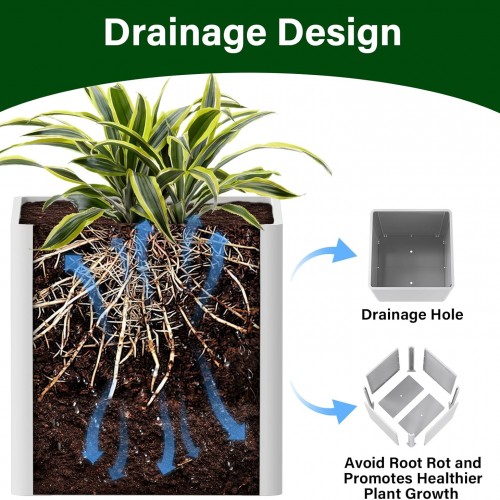 - BUILT-IN DRAINAGE SYSTEM: Equipped with pre-drilled drainage holes, this planter box ensures efficient water management, preventing the risk of overwatering your plants. Designed for versatility, it allows you to seamlessly transition between indoor and outdoor use without compromising on plant care.