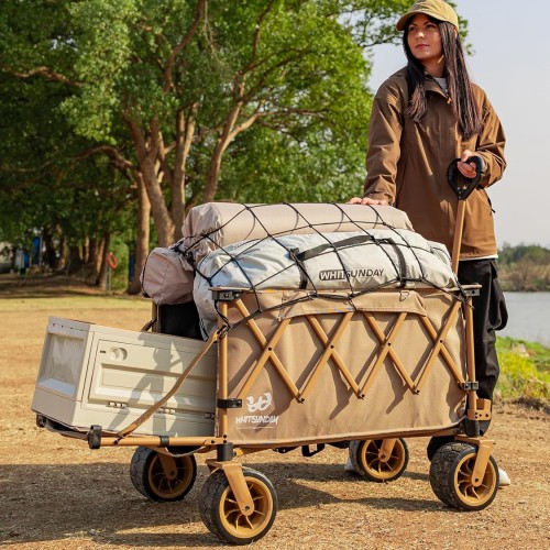 - 【Adjustable Handle】 Whitsunday wagon cart has adjustable handle, With a 180° rotation design, it is suitable for pulling the wagon in different directions. The spring-loaded handle can be adjusted in height, accommodating individuals of varying heights and making it easy to pull with minimal effort.