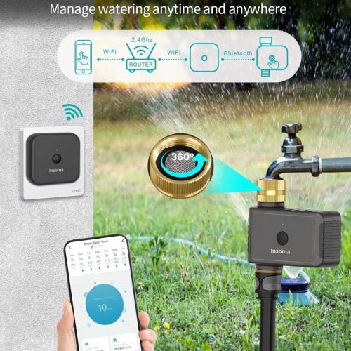 WiFi Hose Timer with Brass Inlet, Smart Water Timer 1 Zone, Sprinkler Timer w/WiFi hub for Remote Control via 2.4Ghz WiFi, Voice/App Controls with Alexa & Google Assistant, for Lawns Yards