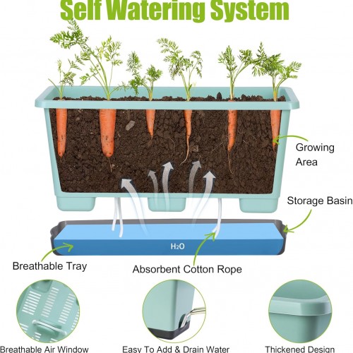 Window Box Planter 6 Pcs, 17 Inches Rectangle Flower Pots with Drainage Holes and Trays, Vegetable Planters for Windowsill Patio Garden Balcony Home Porch Yard Indoor Outdoor (Green, 17*7.4*7.8 inch)
